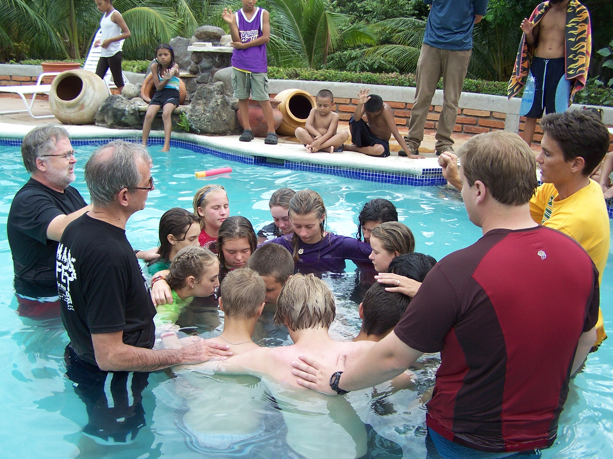 Throughout the summer so far we have had a lot of activity with visitor coming from the United States to help with the work that God is doing here. Everyone comes from a different place and different perspective…but all see God evidently here in the eyes of children, in the depths of poverty, in the celebration of worship, in the efforts of God’s people, and in fervent times of prayer. God is constantly at work. This summer we had several people make decisions to be baptized and they wanted to be baptized here in Nicaragua before they left. Baptism is an act of obedience in following Jesus to obey his command (Mark 1, 16), it has a great symbolism of our death and resurrection with Jesus (Romans 6) and it is a powerful time where the Holy Spirit is at work in us individually (Acts 19). We were more than excited to baptize those who were wanting to be!
