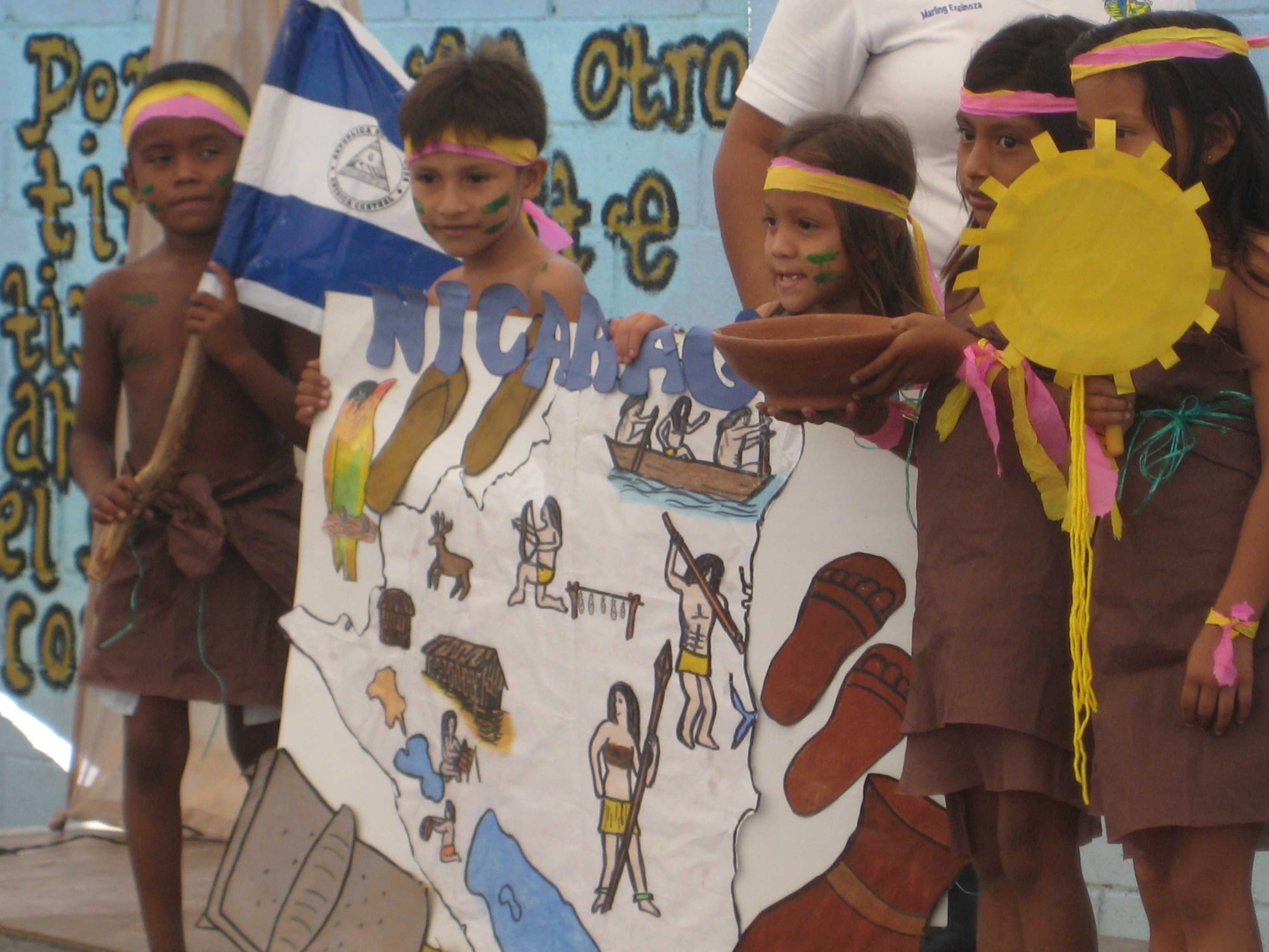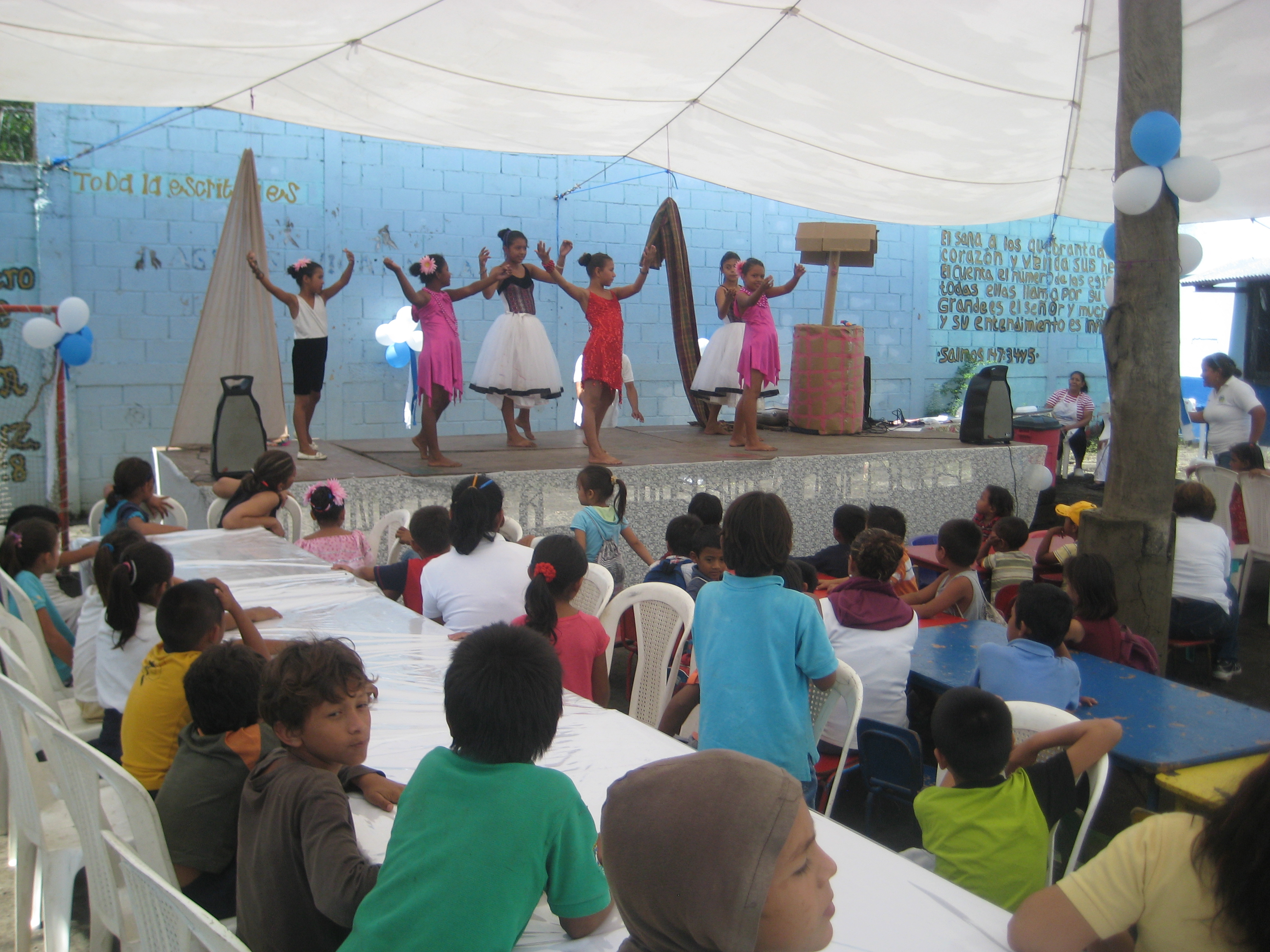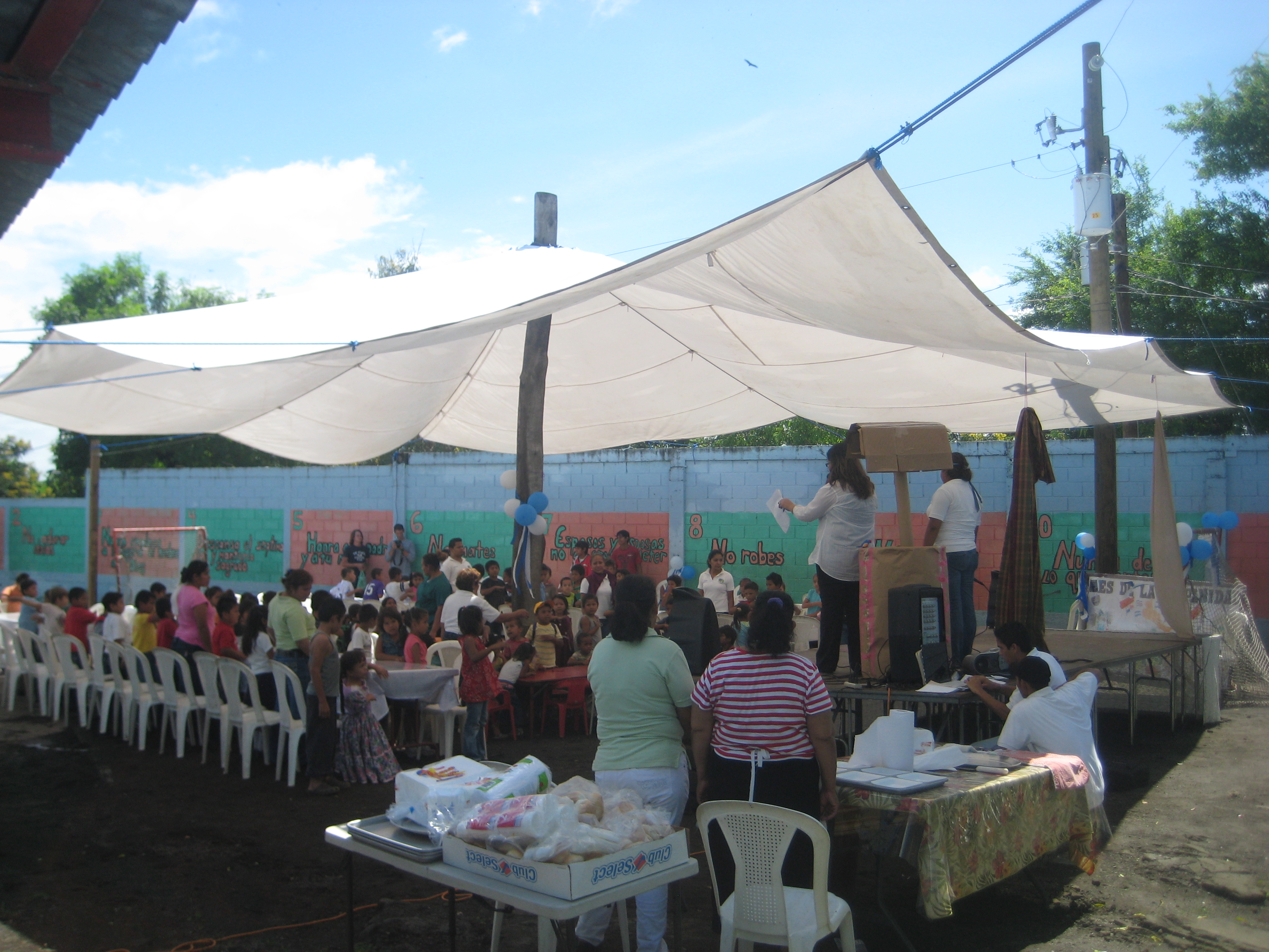 It was also just in time for Dia de Hispanidad, which is a day where the children learn about the culture and history of Nicaragua, then they put on a show with songs and dance, and then have a big typical lunch…..Nacatamales!!! Here are some pictures from the event…under the tent! 🙂
