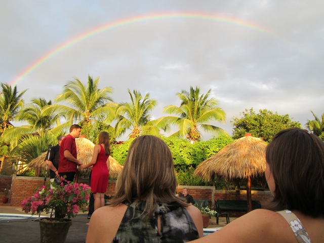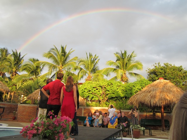 It will be a great celebration tomorrow, we just had a wonderful time with family and out of town guests put on by the Murray family. This rainbow decided to come out right as the rehearsal was starting….awesome!