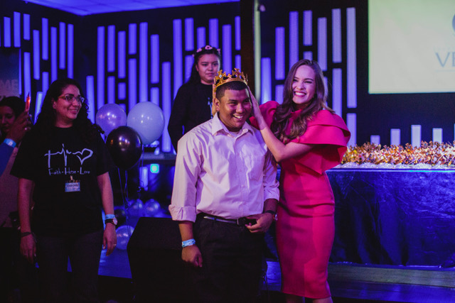 After the entrance our crowning ceremony was also very special. One of the important moments of the night is for every honored guest to be crowned as either King or Queen of the prom. There was a special video we played where Tim Tebow declared each guest King or Queen of the Prom. We also had a special guest to do the crowning. Miss Teen Nicaragua is friends with some of our friends at church who were organizing. She loves the Lord and when she heard about “Night to Shine” she volunteered to help. Each King and Queen was crowned by a pageant queen that they all have seen recently on the local Nicaraguan news reports. It was so cool for the guests and their family…they each got to take a picture that they will never forget!